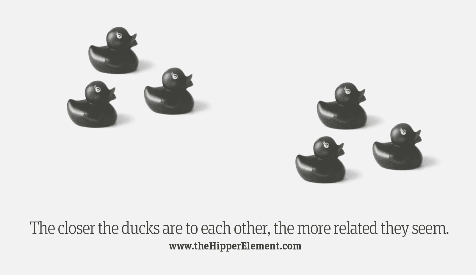 The principle of proximity calls for related items to be grouped visually, creating less clutter and making for a more organized layout.tems unrelated to each other should be placed further apart, to emphasize their lack of relationship.